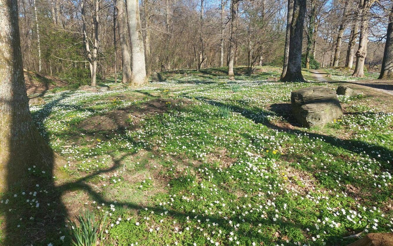 Jag vill rekommendera alla som har möjlighet att ta en runda på Veddiges fina och lagom kuperade motionsslinga, nu när allt är som bäst och vackrast. Marken är helt översållad med vitsippor och andra vårblommor, för att inte tala om all fågelsång som möter en längs hela slingan. Den nedre, norra delen, kan nästan liknas vid en orörd "svensk regnskog".