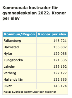 Så, kul att Varbergs kommun är bra på ”arbetsmarknad, attraktivitet, kultur- och fritid samt samhällsplanering”. Men, undrar om barnfamiljerna i Varberg vet att ”Superkommunen” är ”Snålkommunnen” när det gäller skolbarnen?