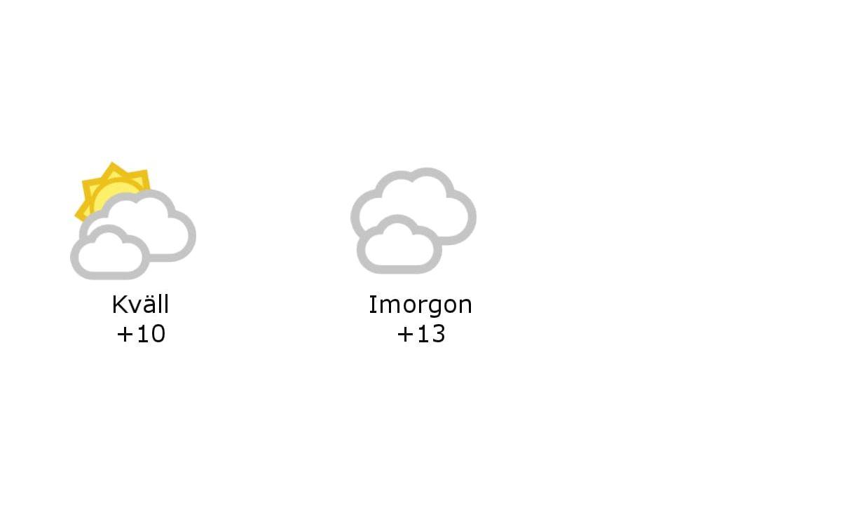 Under kvällen bjuds det på molnigt väder, vindstillaa sydostliga vindar och temperaturer kring 12 grader.