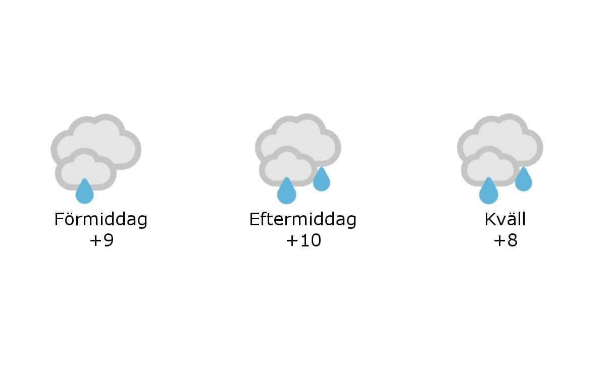 Dagen bjuder på regnskurar, svaga sydostliga vindar och temperaturer på runt 10 grader.