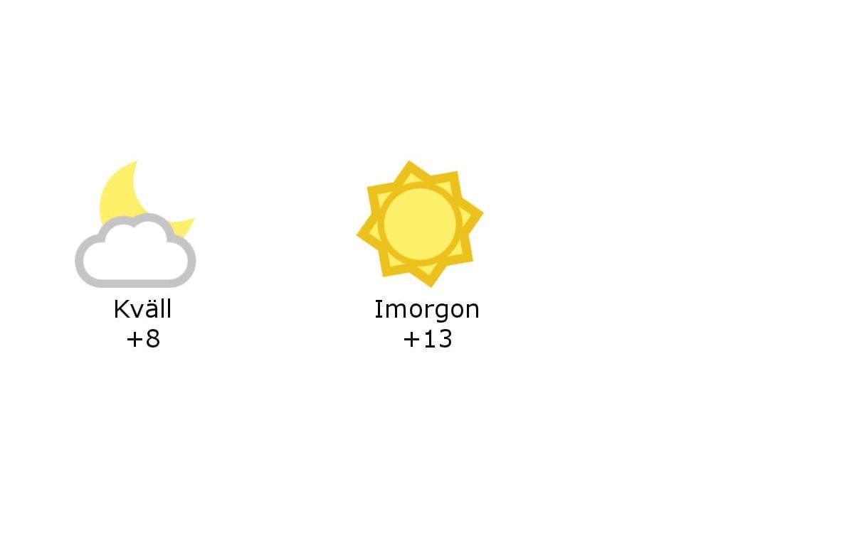På tisdagen blir det klart med måttliga vindar och temperaturer runt 13 grader.