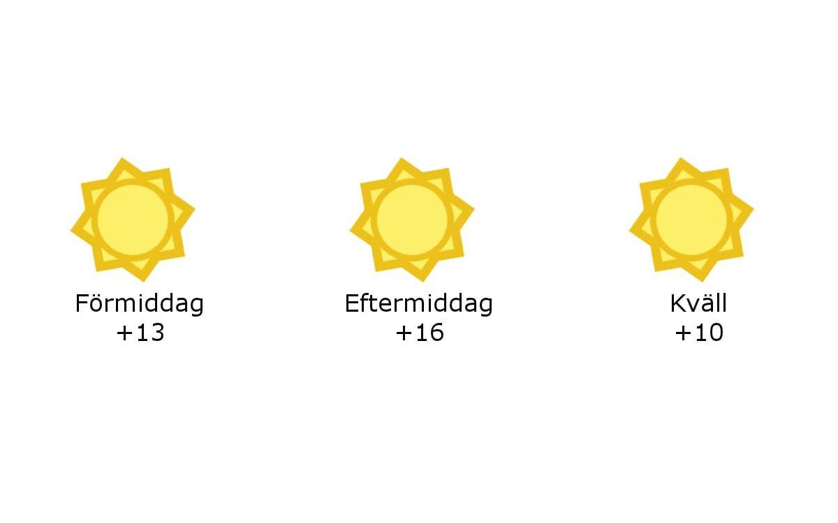 Under dagen blir det klart väder, måttliga nordvästliga vindar och temperaturer kring 16 grader.