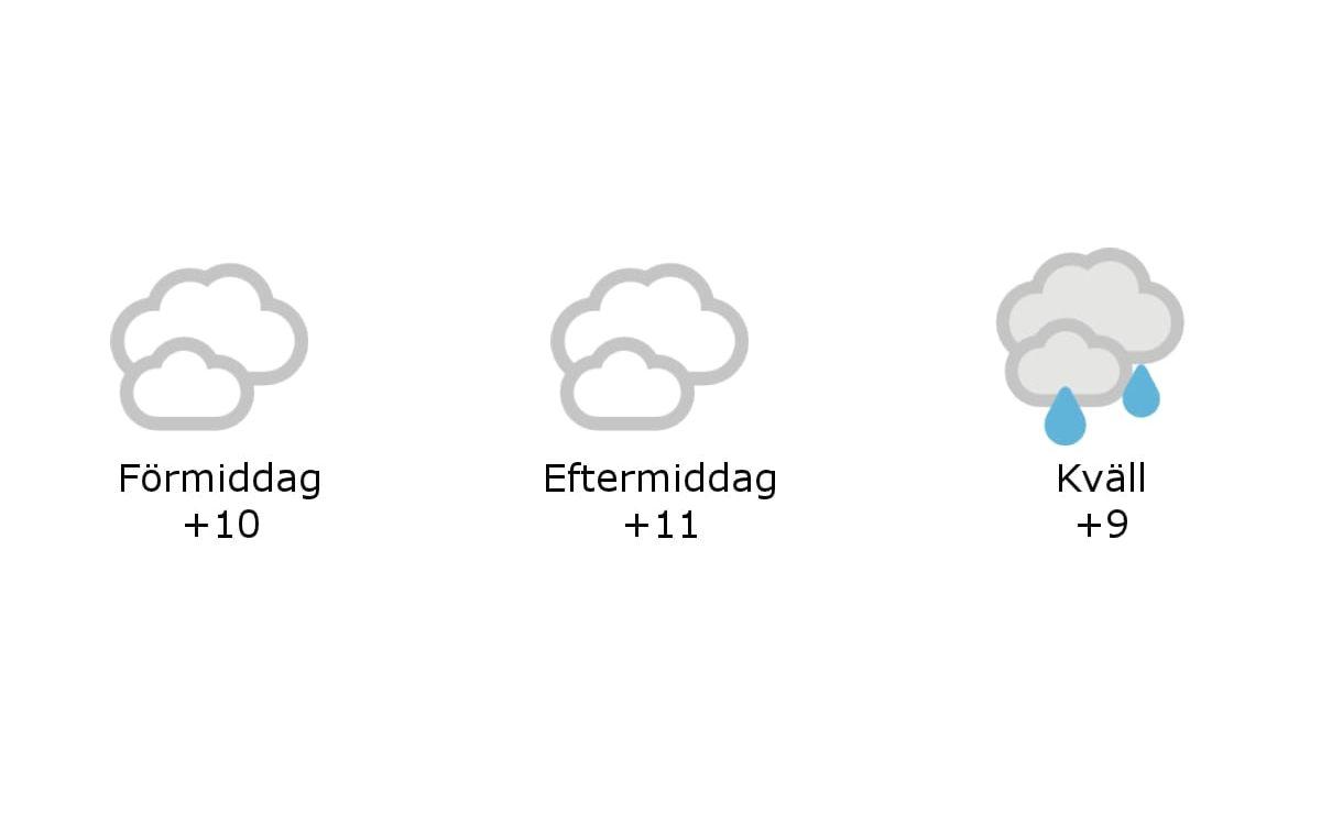 Dagen väntas ge molnigt till mulet väder med regn, måttliga sydliga vindar och temperaturer kring 12 grader.