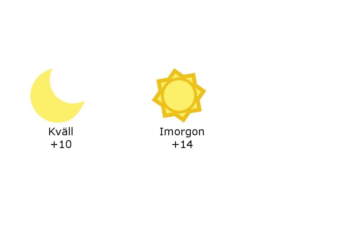 På tisdagen blir det klart med måttliga vindar och temperaturer runt 14 grader.