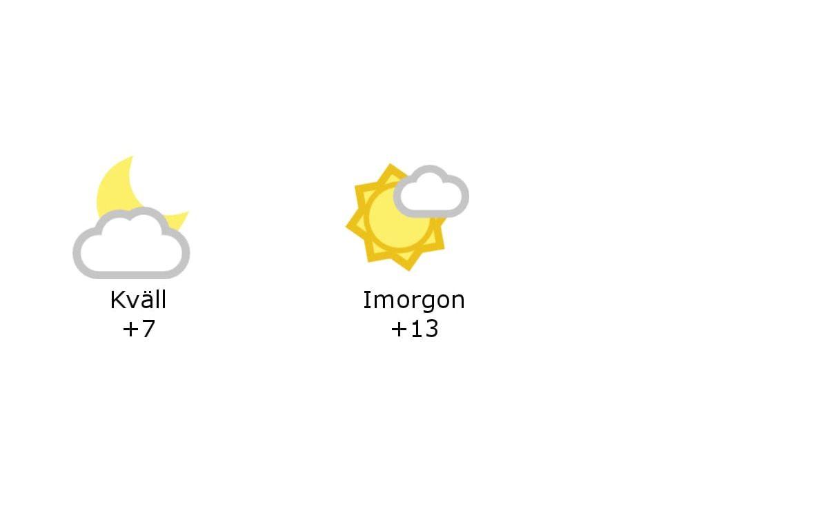 Under kvällen blir det halvklart väder, svaga nordliga vindar och temperaturer kring 9 grader.