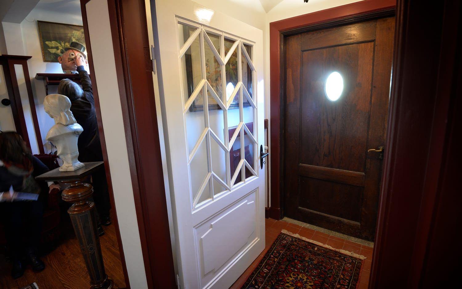 Redan innanför ytterdörren signalerar villan högreståndsbostad. Hallen är magnifik och rymlig, där finns en öppen spis i ena hörnet och trappan som är lagom skymd har fått ta plats och vinklar sig upp på andra våningen.