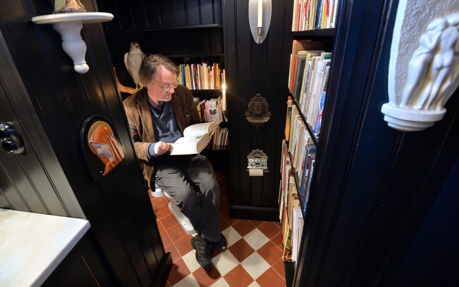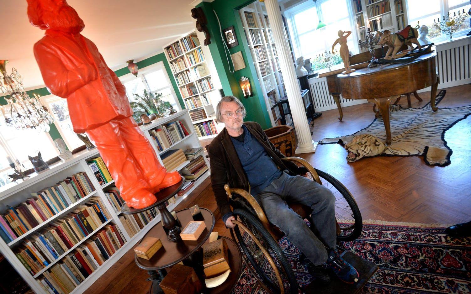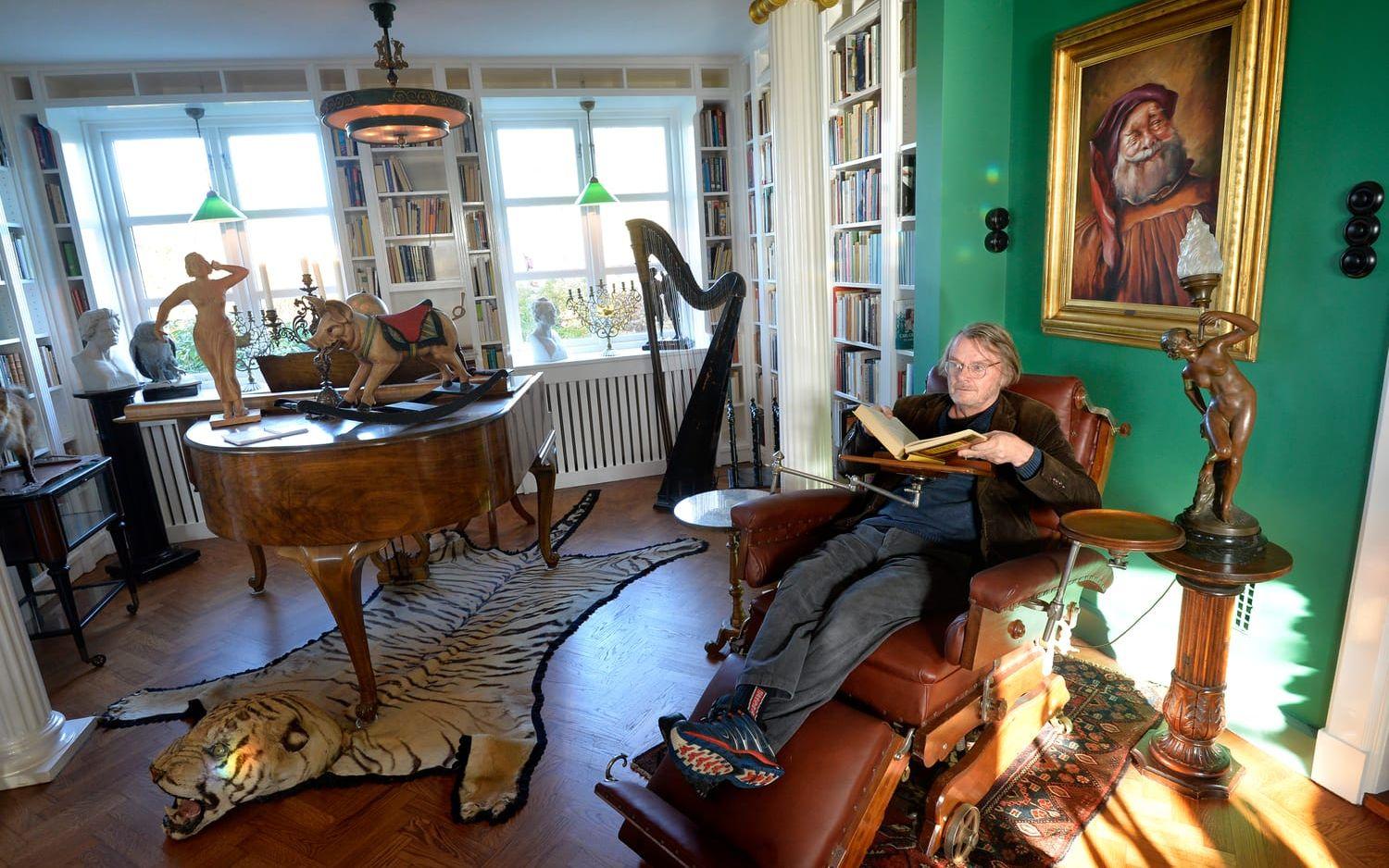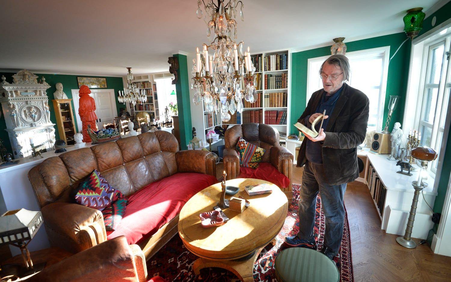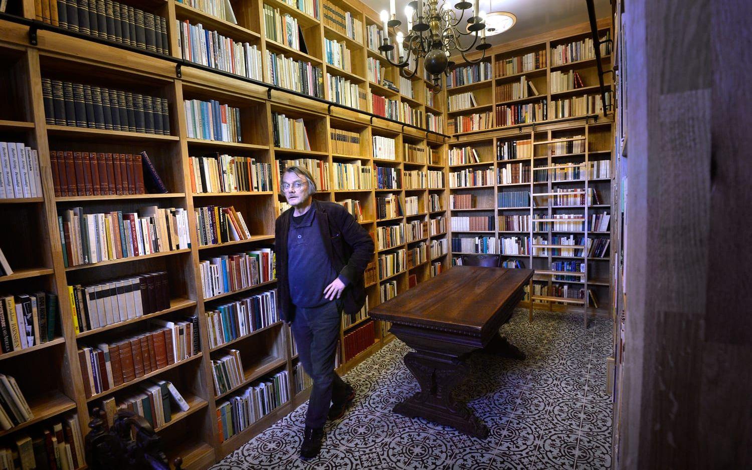 I den Nordblomska villan har han skapat en samling som liknar ett folkbibliotek från 1970-talet.